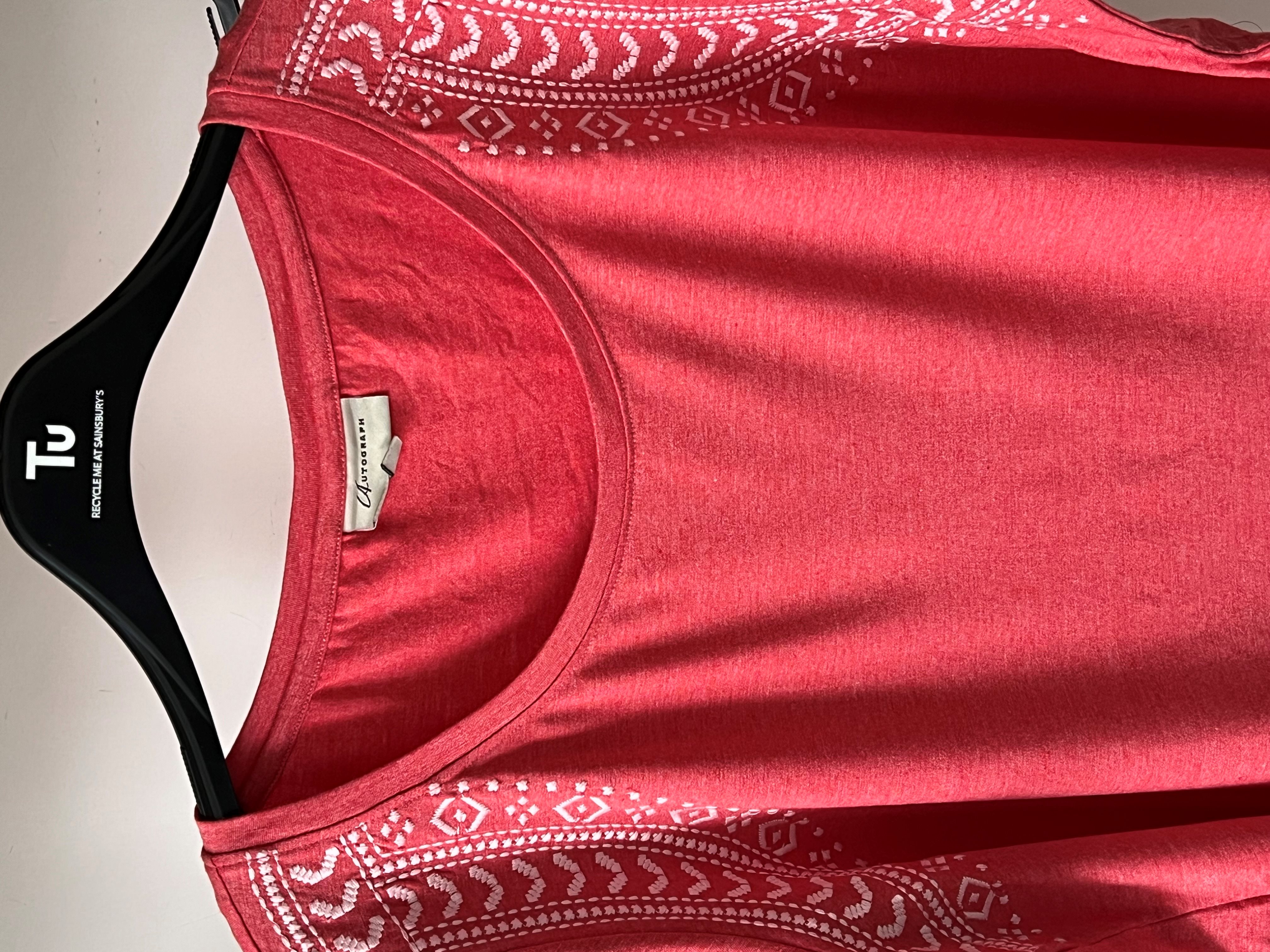 تیشرت زنانه AUTOGRAPH اورجینال و بسیار زیبا با رنگ سرخابی دور تیشرت با نخ کار شده و طرح رو بسیار منحصر بفرد کرده
